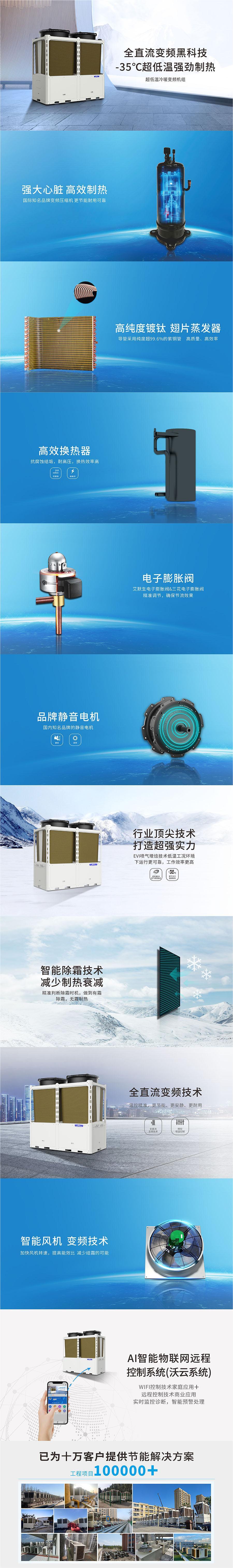 超低温:机组可在-30℃环温下高效采暖,最高出水温度可达60℃;