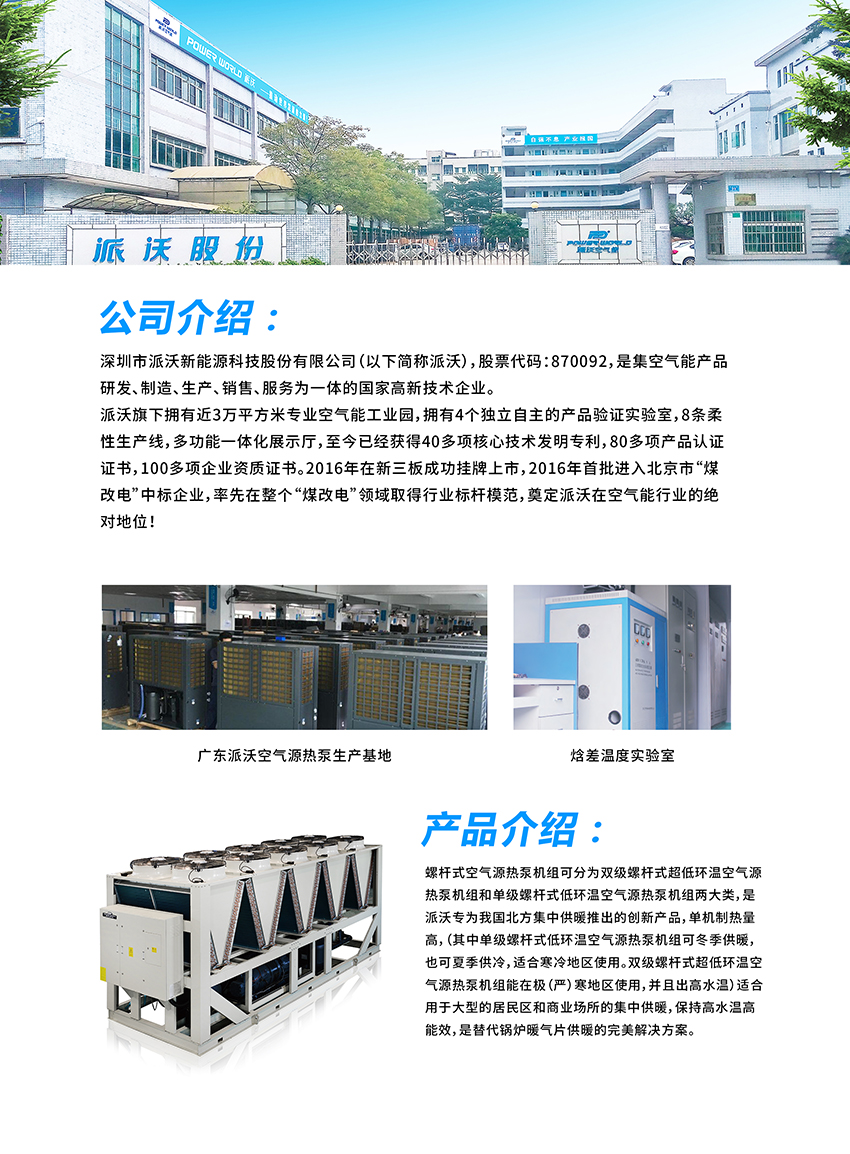 项目类别:螺杆式超低环温空气源热泵机组