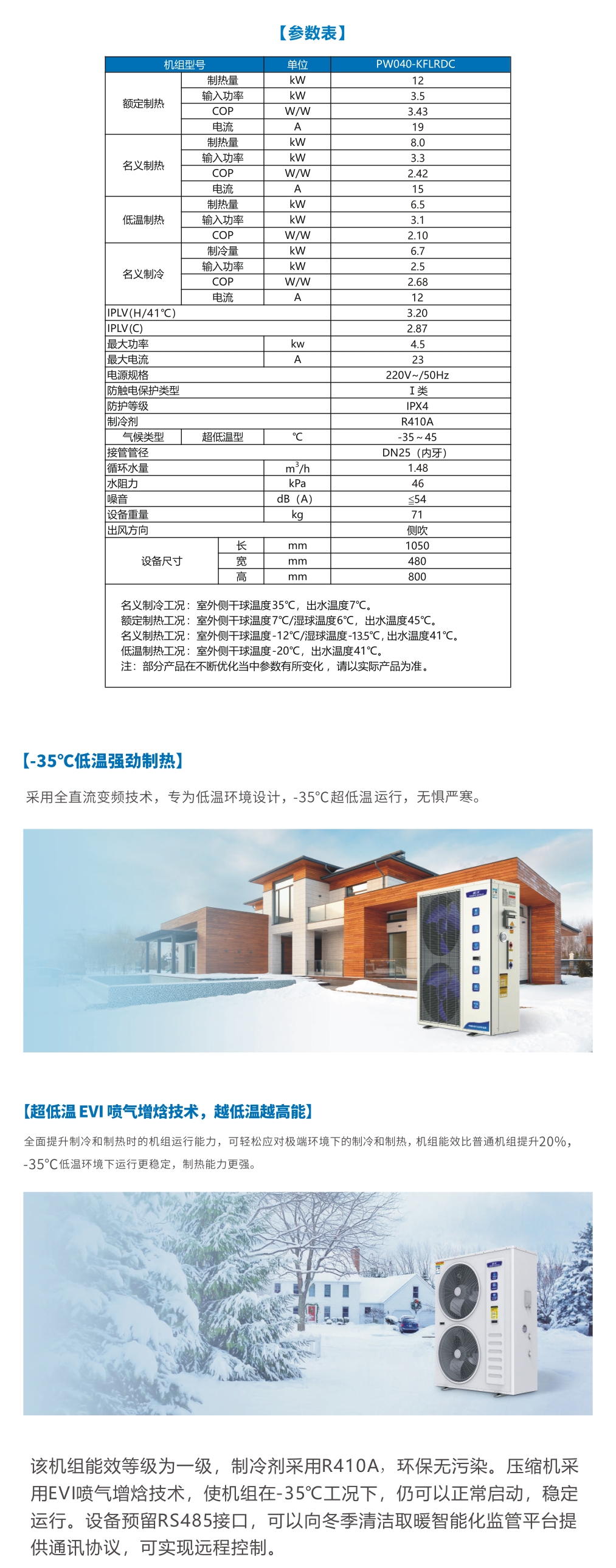 变频低环境温度空气源热泵机组 4匹