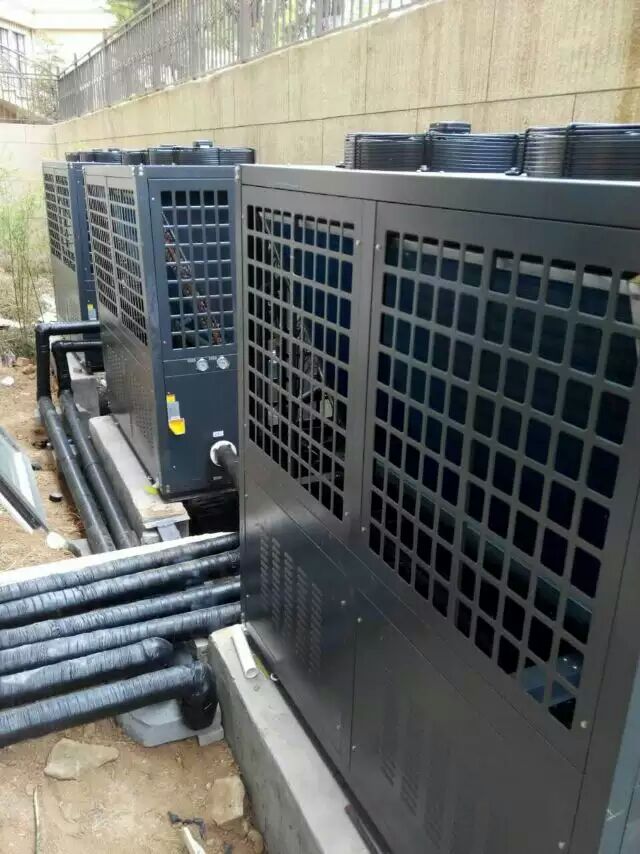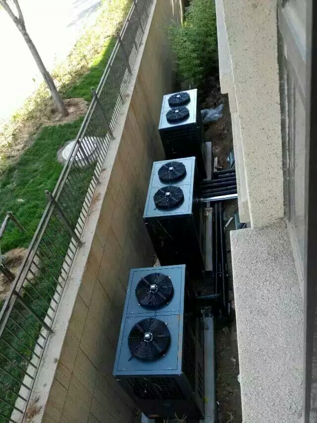 山东烟台店博康健身,400立方泳池恒温加热、空气能热泵泳池热水机组每天20吨以上洗浴热水