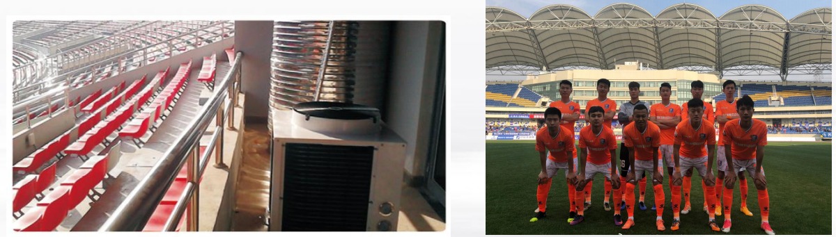 大型场馆:长期征战中甲、中乙的江西联盛足球俱乐部为运动健将们选择milan米兰商用循环式系列空气源热泵热水,可随时为球员提供恒温淋浴用水,出水量大,体感舒适,即开即停。满足比赛、训练过程集中淋浴的大量健康热水需求。