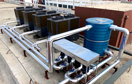1 冷凝热回收型空气源热泵机组冷凝热回收型机组分为部分热回收型与全热回收型。部分热回型一般可回收20%~30%的冷凝热一1|,不过近年来随着产品的不断发展,市场中已有可回收70%冷凝热的部分热回收机型,且产品也在逐渐成熟。此类机型在制取空调冷水、热水时,均可以制取生活热水。制取空调冷水时,回收的冷凝热可以全部用于制取生活热水;制取空调热水时,机组的制热量可根据设定按比例为空调热水和生活热水分配热量,空调热水所占的热量比例约为30%~70%[2j。由于热量分配比例范围较宽,所以可以适用于多种负荷组合,满足多种工程需求。