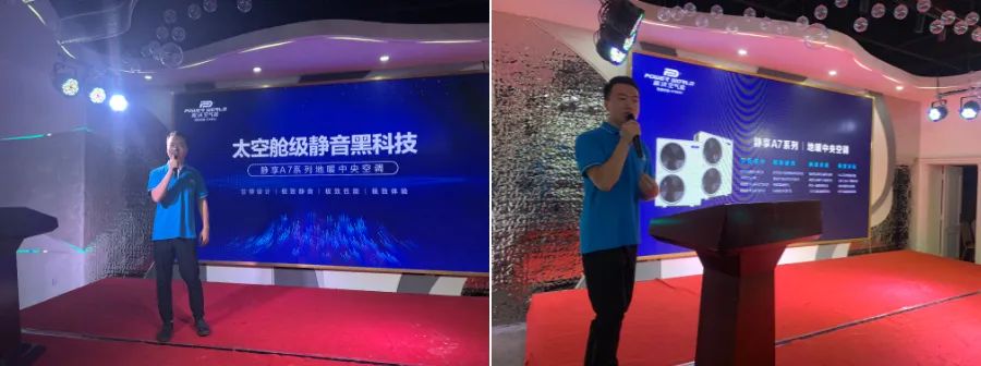 接下来就是milan米兰空气能A7新品发布环节,由王鑫宇王总上台为大家介绍新品A7,milan米兰空气能重磅新品——静享A7系列·地暖中央空调震撼亮相。
