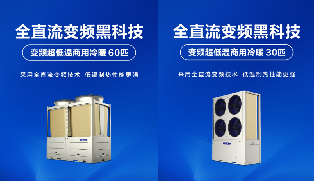 变频超低温商用冷暖机组,低温制热更强劲,高效供暖更节能;全直流变频,温度“0”波动,柔和更舒适。