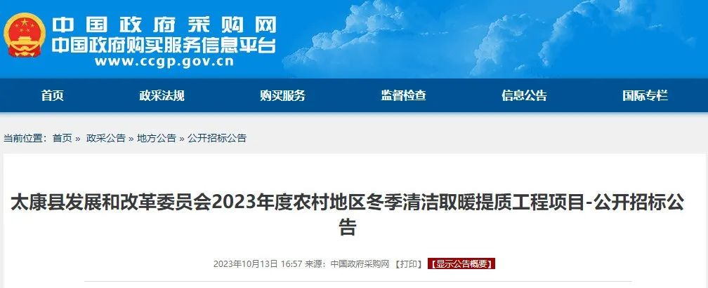 太康县2023年农村地区冬季清洁取暖项目招标公告,预算金额:3750万元!
