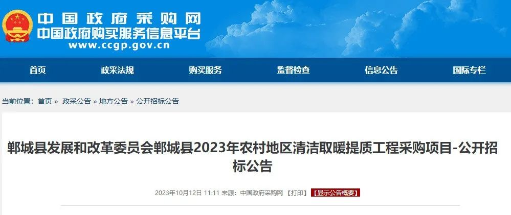 郸城县2023年农村地区清洁取暖项目招标公告,预算金额:3984万元!