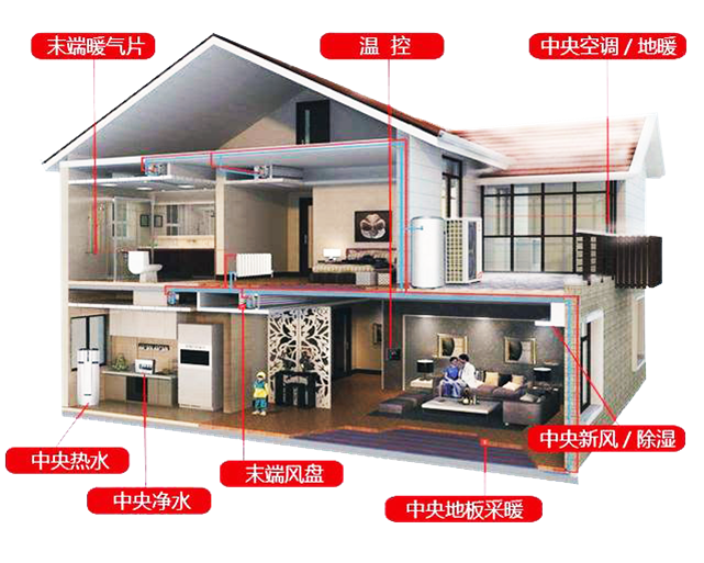 空气源热泵在采暖和制冷方面都表现出极高的舒适性。采暖时,热泵在室内形成脚底至头部逐渐递减的温度梯度,给人以脚暖头凉的舒适感,符合中医温足而顶凉的健身理论。制冷时,通过连接中央风盘管并架设在天花吊顶上面,冷气从天花吊顶的出风口送出,温度波动小,制冷送风温度较高,不干燥不潮湿,更柔和、更贴合人体生理所适合接受的温度差。